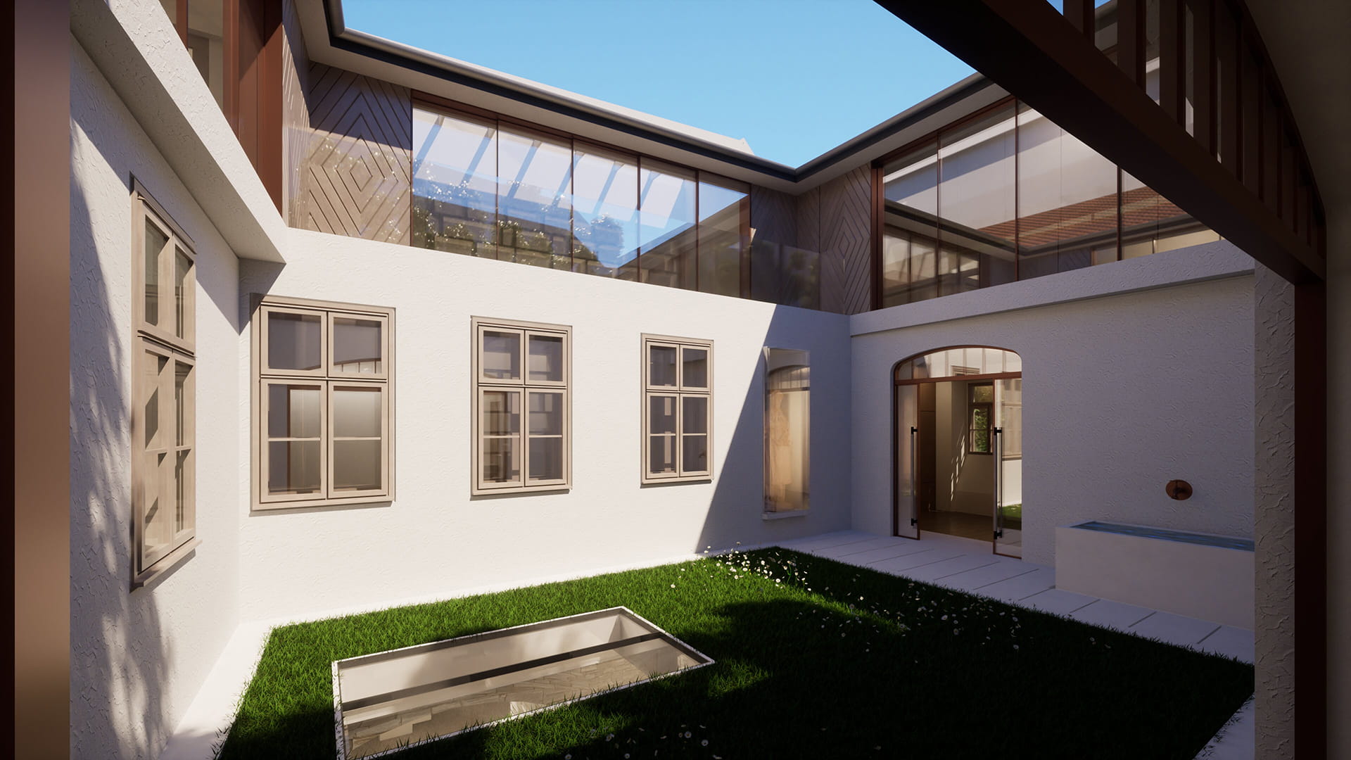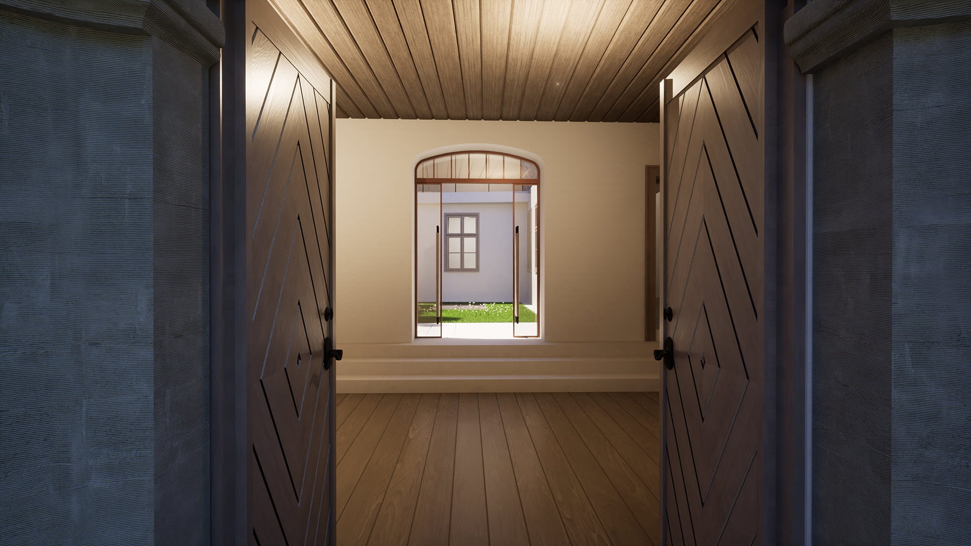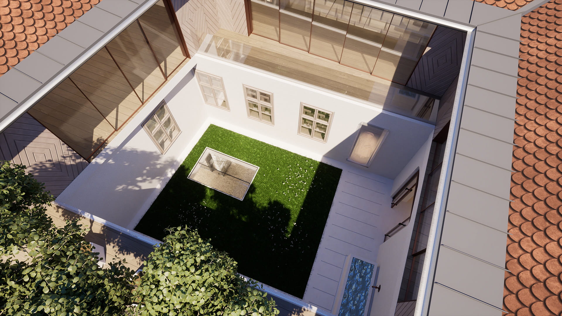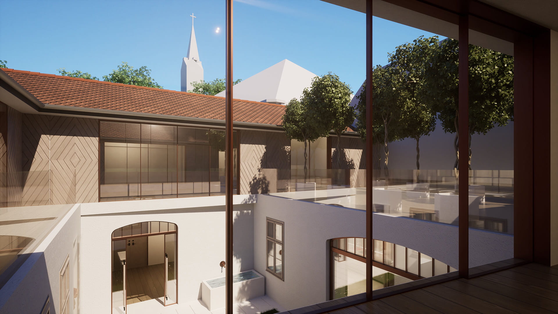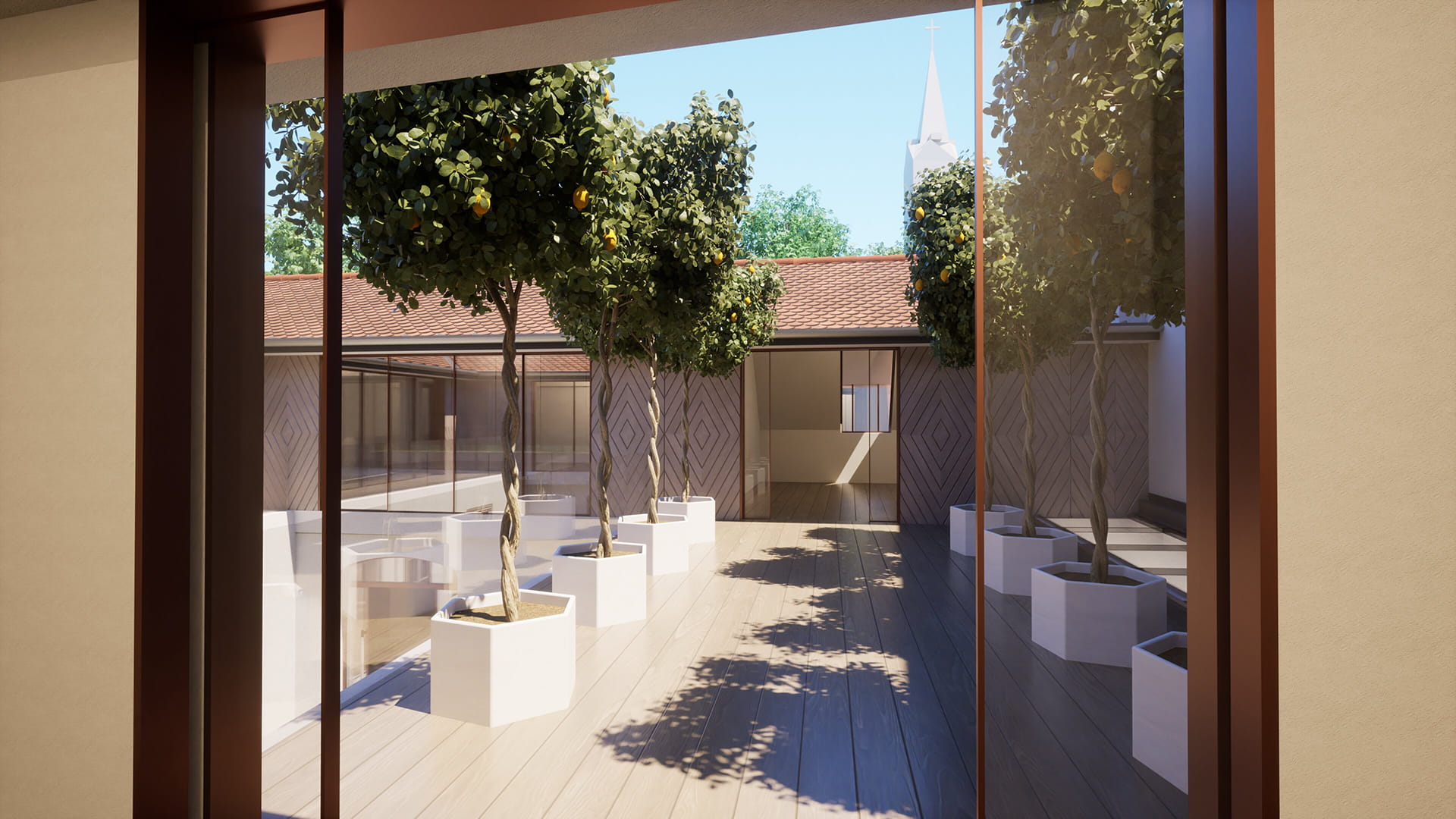 A növények gyógyító jelenlétével idézzük meg az egykori kolostor kerteket. A felső kertben helyezkednek el az illatozó citrus és jázmin félék. A jázmin az aroma terápiában a lelki egyensúlyt segít helyreállítani. Az alsó kert egész évben diszítő, gyógyhatású növényekkel kerül beültetésre. Közülük az erdei pajzsikáról mondja Szt Hildegrand … ereje a Nap erejéhez hasonlatos, mert ahogy a Nap a sötétséget elűzi, úgy kényszeríti menekülésre az erdei pajzsika a sötét szellemeket…