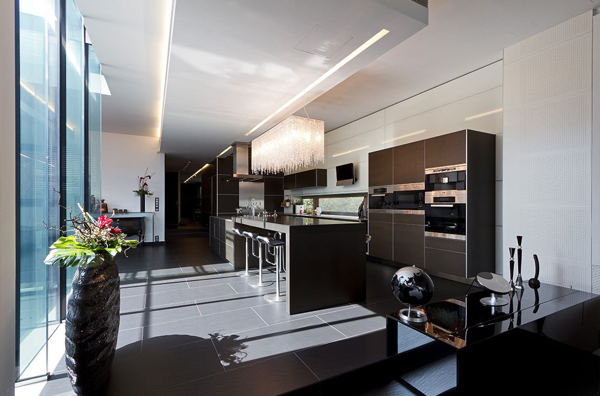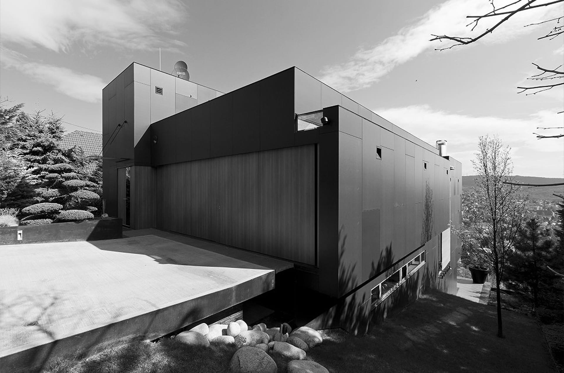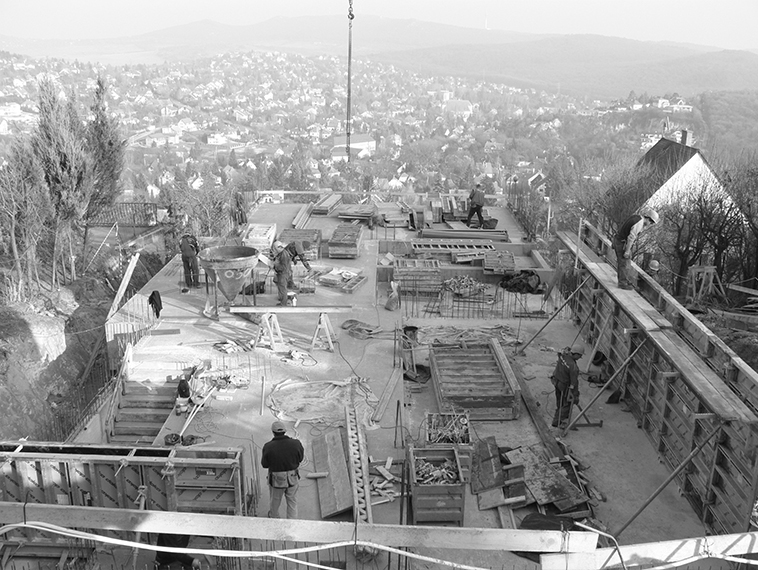 Az épület kialakítása a hazai tervezési gyakorlattól teljesen eltért. A megrendelők igényeire és az elementáris panorámára került ráhangolásra. Az épület alól kifutó meredek kert tájépítészeti kialakítása az építész és a tájépítészek közös gondolkodásának a gyümölcse. A soha nem publikált épülethez már építés közben is zarándokoltak a fekete monolit hívők.